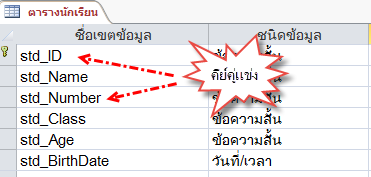 คือ คีย์หลักของตารางที่จะกำหนดให้เป็นฟิลด์ที่สำคัญที่สุดในตาราง ฟิลด์นี้จะต้องไม่มีข้อมูลว่างและจะต้องไม่ซ้ำกัน เช่น ฟิลด์รหัสนักเรียนในตารางนักเรียน ฟิลด์รหัสรายวิชาในตารางรายวิชา เป็นต้น โดยทั่วไปจะนำฟิลด์ที่เป็นคีย์หลักไปสร้างความสัมพันธ์กับตารางอื่น